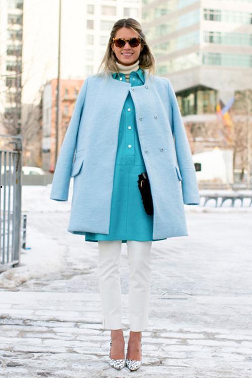 2. 款式搭配:短款蓝色大衣搭配长裙,可以拉长腿部线条,显得更加高挑。而长款蓝色大衣搭配短裤,则可以展现你的大长腿,非常性感。